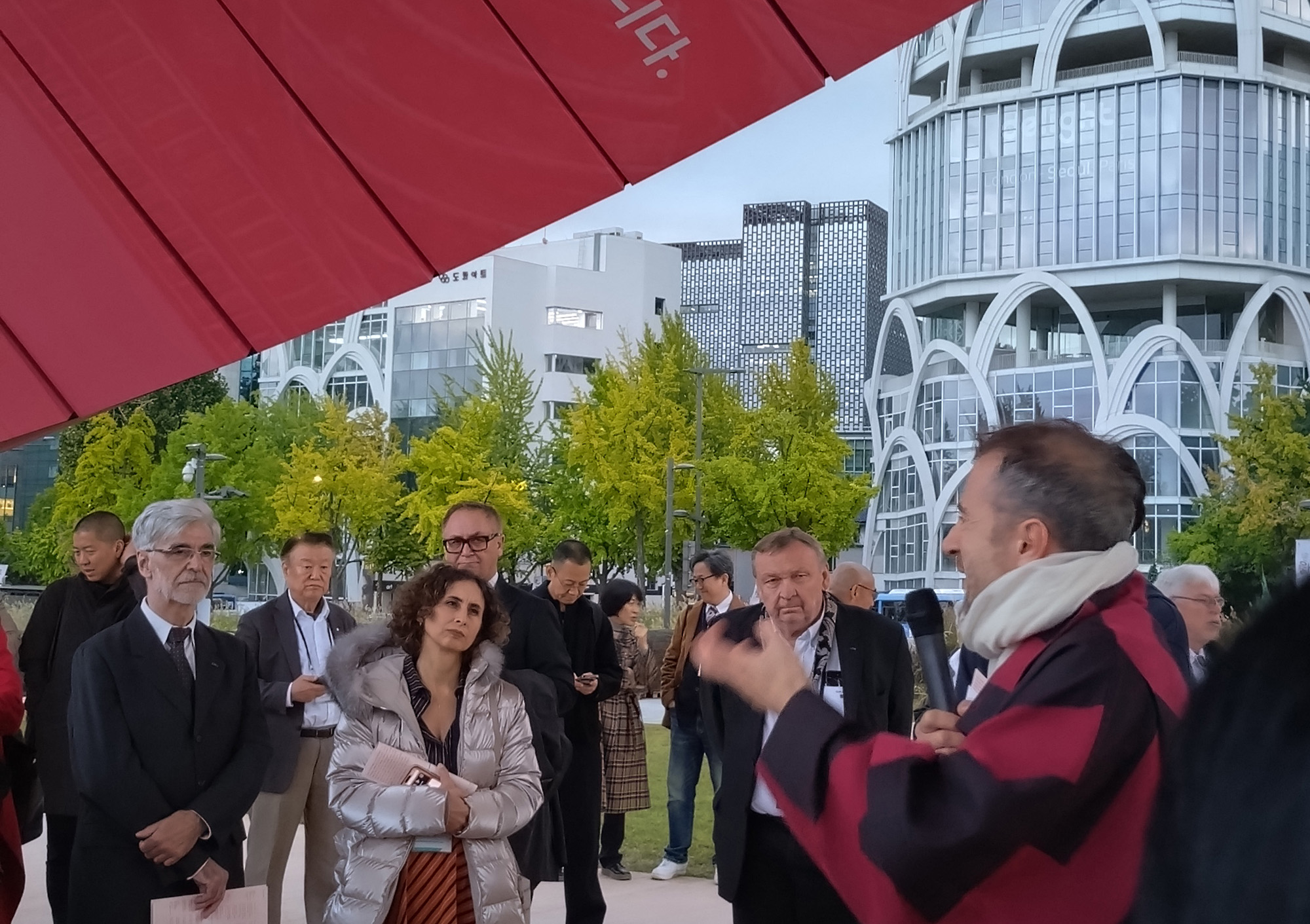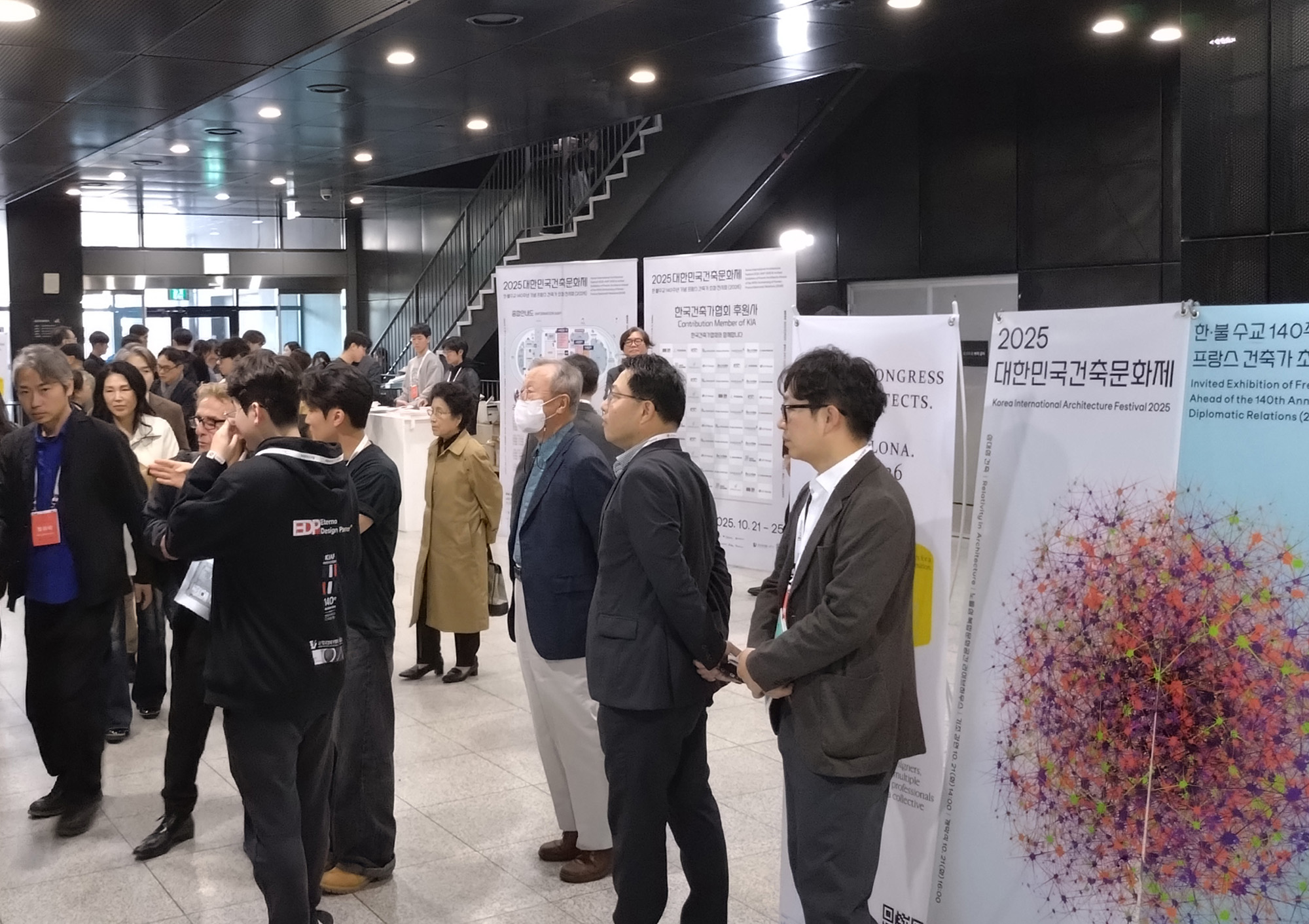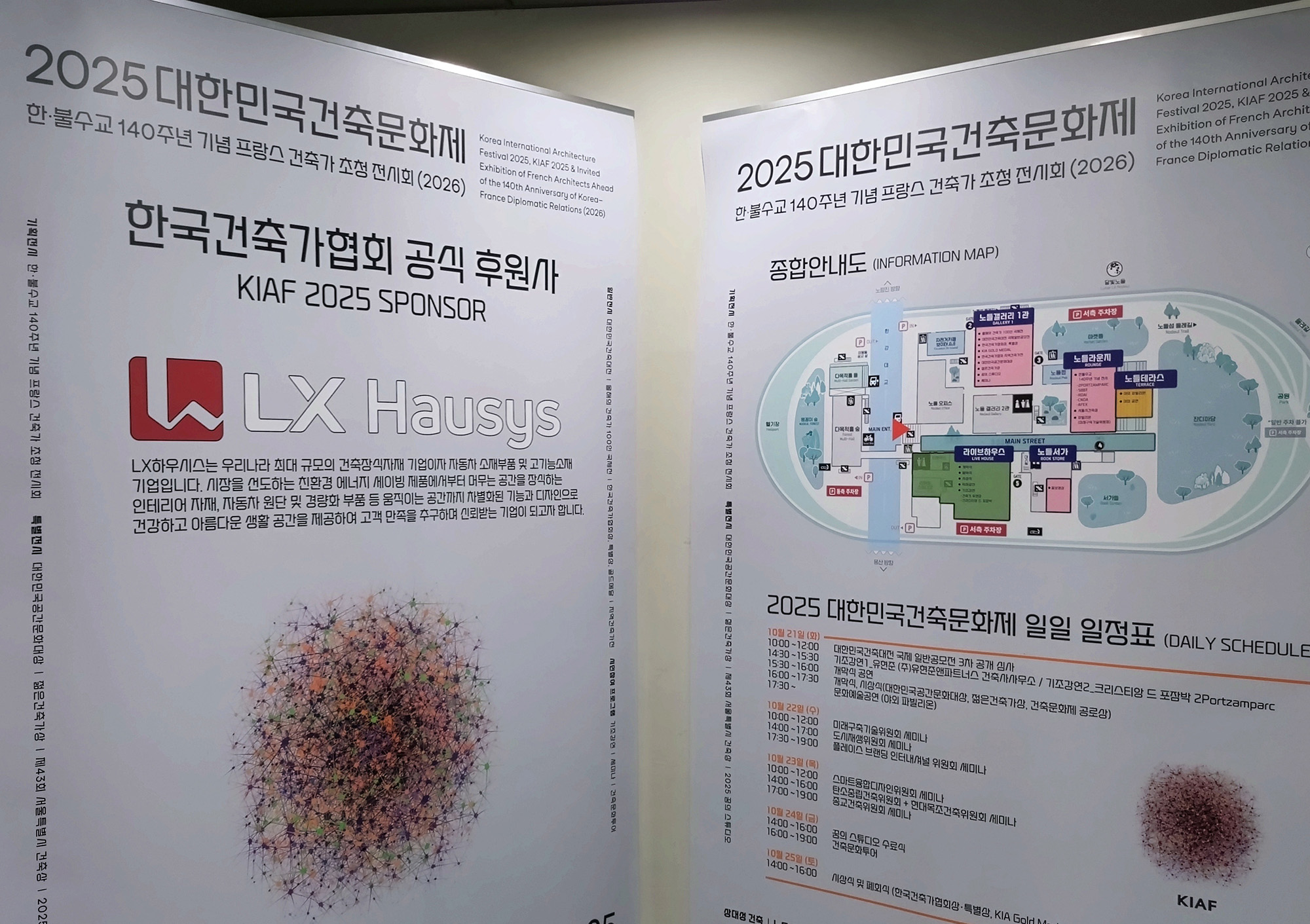 JIAとKorean Institute of Architects(KIA)は毎年それぞれの建築家大会に相互に出席して友好関係を深めている。2025年は「韓国-フランス外交140周年(2026)」の前年に当たるそうで、例年とは異なり、KIA、ソウル市、韓国芸術文化財団、フランス建築家評議会、フランス建築家協会の5団体共催で「韓国国際建築祭2025」が10月21日から25日までソウル市 Nodeul Island で盛大に開催された。大統領直属の建築政策委員会と政府の文化・スポーツ・観光省の協賛、及びフランス文化省とフランス大使館の後援もあり、フランスからも多くの建築家が招かれて展示会が併設された。更にUIAの評議会(カウンシルミーティング)も同時開催されたので世界各国から大勢の建築関係者が集まり、国際色豊かで大変賑やかなイベントとなった。