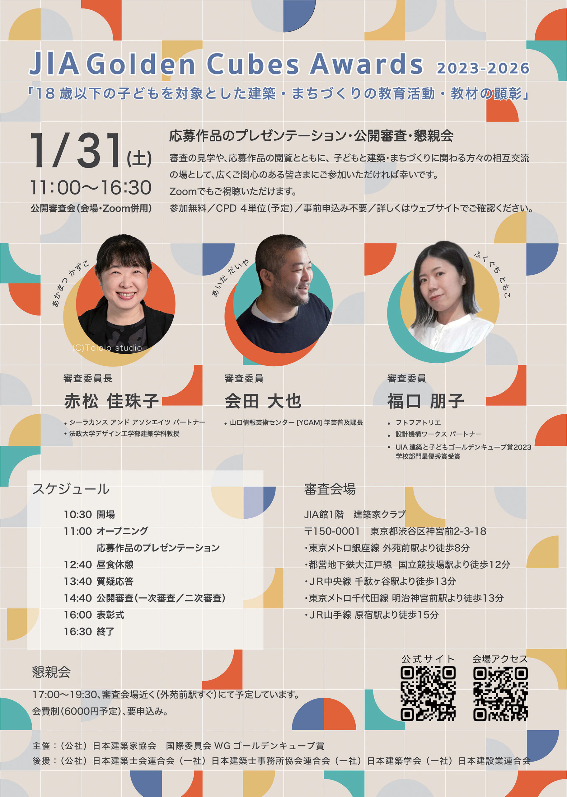 「JIAゴールデンキューブ賞2023-2026」応募作品のプレゼンテーション・公開審査・懇親会が開催されます。詳細は下記公式サイトをご覧ください。